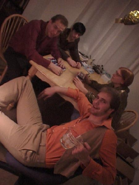 pimps and hos party at erika's. clockwise, from bottom: gus, evan, aidan, disco trick ham, erika.